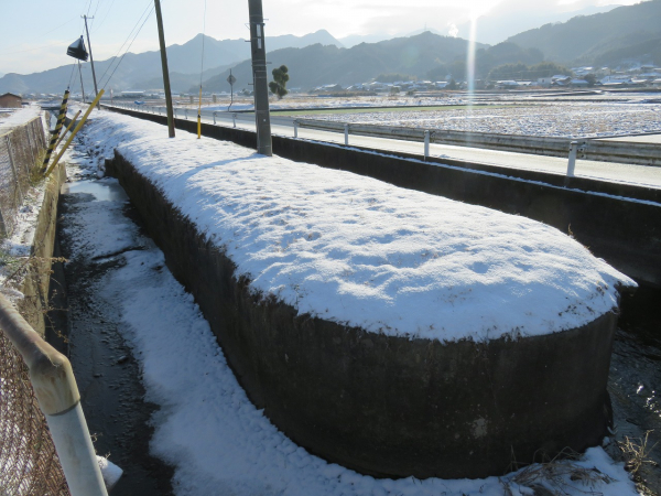 今期最強を何度か更新した 最強寒波により 雪が積もって(溶け残って)います。 |