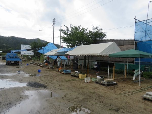 27日の2級が対象の日は早朝から雨が降り、 テントを張って足場が悪い中での作業となりました。