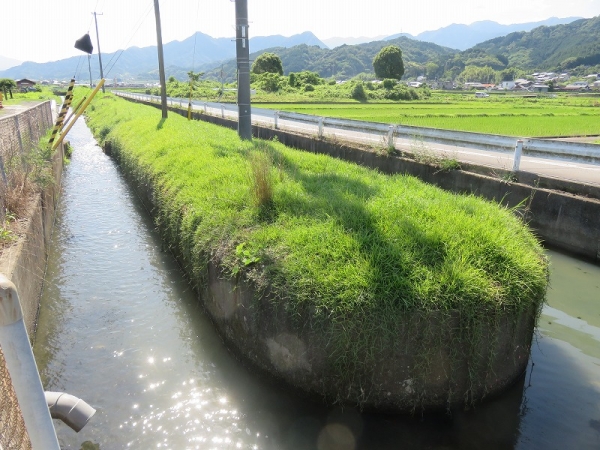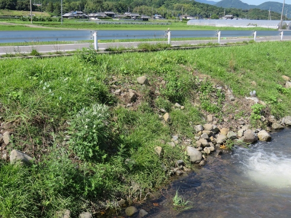 刈った草を無処理区との間に 置かせてもらっていますが その奥の無処理区と 手前の草丈の差は日に日に 大きくなってきています。