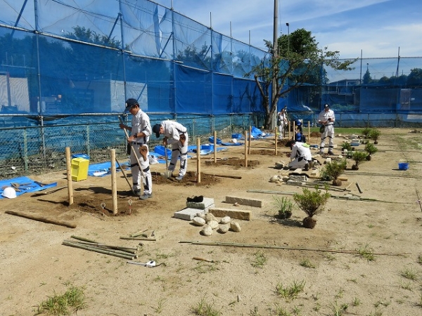造園組合にて材料を準備して