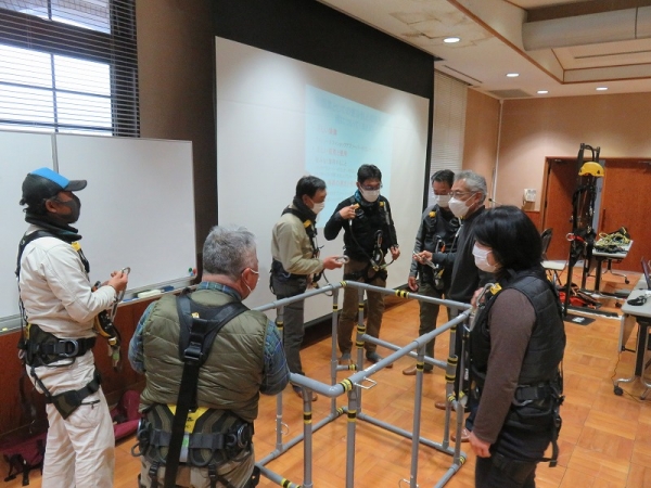 令和4年3月1日に (一社)日本造園組合連合会(造園連)の 会員を対象に フルハーネス型墜落制止用器具の 特別教育(セットメニュー講習)を 愛媛県花き研究指導室で行いました。