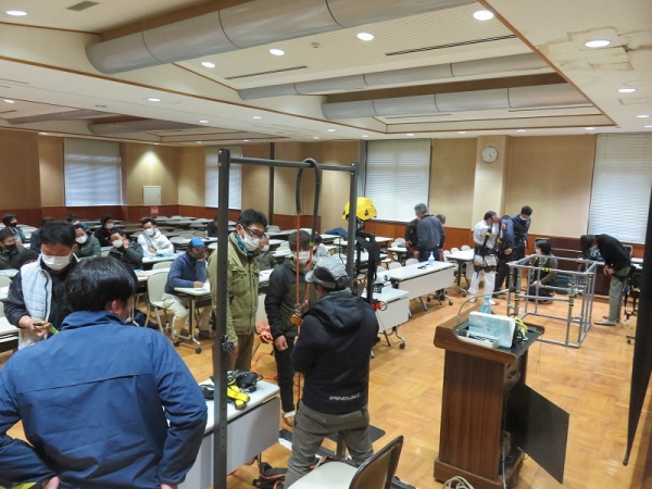 今回の特別教育は 昨年末に「フルハーネス型」の 受講希望人数のアンケートをとり コベルコ出張講習と 造園連セットメニュー講習の 開催になりました。