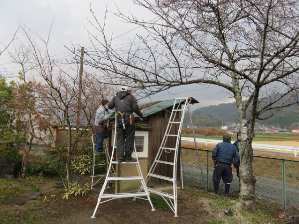古い杉皮をすべて取り除き