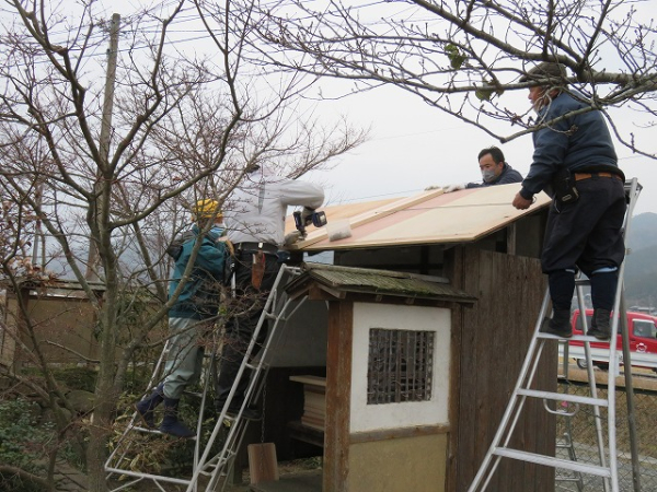 待合の屋根の修繕を行いました。