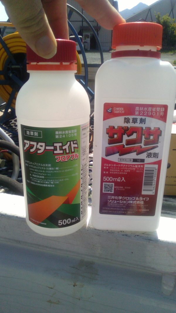 ※ラウンドアップマックスロード以外の 除草剤の混用は、ノズルの詰まりや噴霧器の 破損事例が発生していますので、 今回の散布はメーカー推奨のやり方ではなく 自己責任で実施しています。 噴霧器も大きめで、散布する水量も 通常の倍近くまかれていますので 効果のほどを追って報告します。