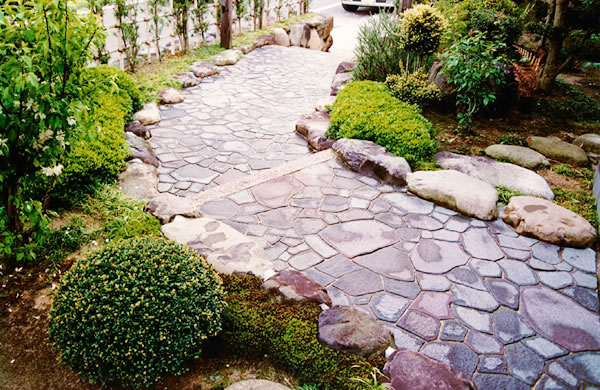 写真:「高度な技術が必要な石張りのアプローチ」